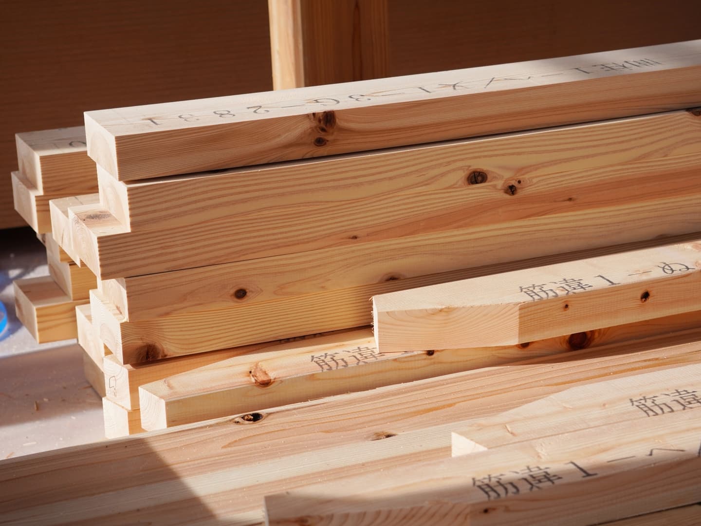 天然乾燥では含水率が下がりにくかったり、一方人工乾燥で高温にさらしすぎると、木材が変色したりします。どの部位にどの木材を使うかで乾燥方法は異なりますので、適切な処理をされた木材を入手する必要があります。
