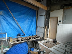 間取りが変わるため、壁もすべて取り払って工事をしています。
