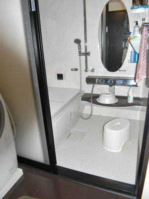 浴室の出入り口の幅が拡張され、また段差も解消されています。
