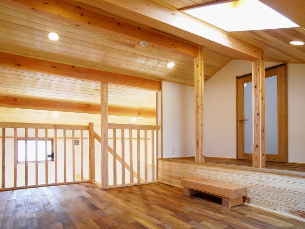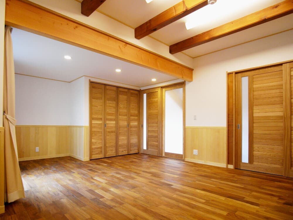 昔の梁を活かし、間取りも一新して広いリビングにしました